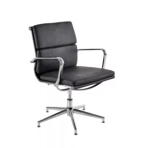 The range also includes a memory swivel return, allowing the chair to return to its original position when not in use. With soft leather facings and chrome detailing, it offers a refined and professional finish suitable for modern workspaces.