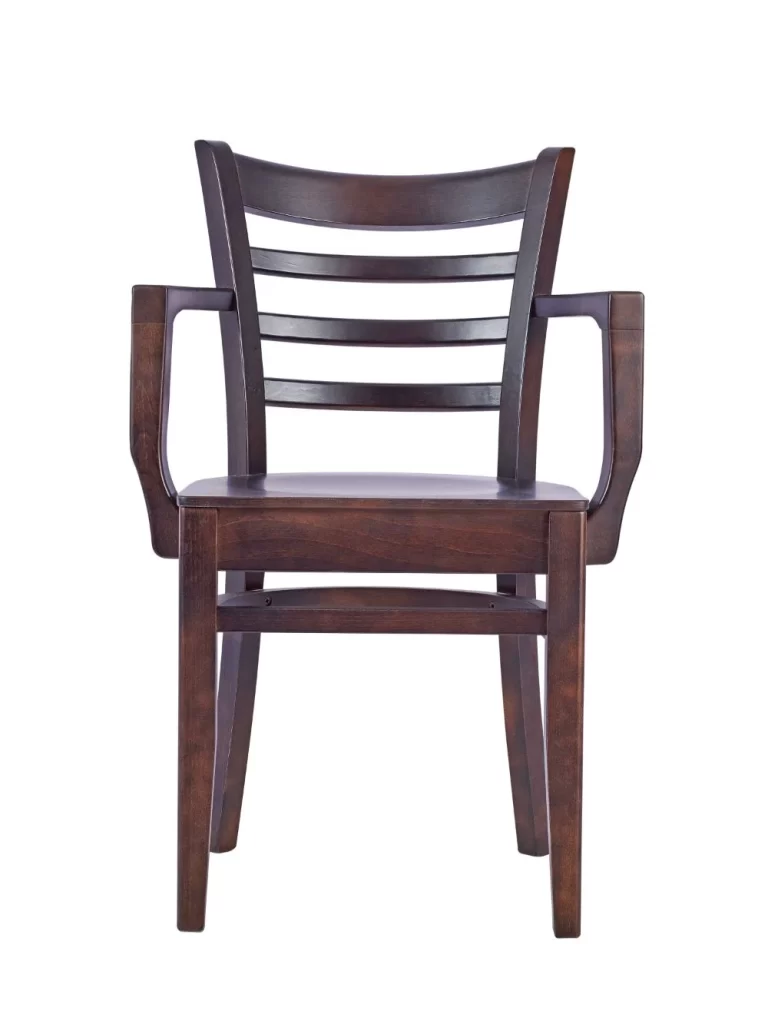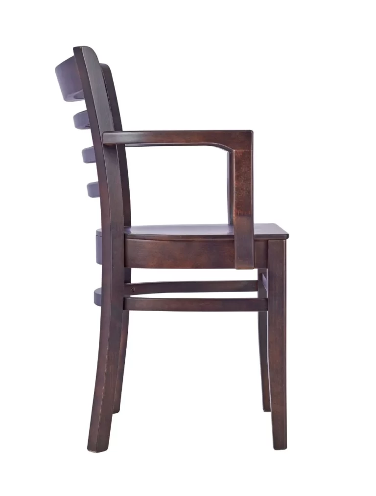 The Dallas Armchair is solid beech built for busy environments — horizontal slat back, tapered legs, a silhouette that has never gone out of fashion and never will.