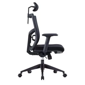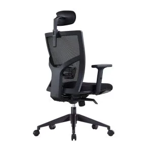The Executive Mesh Chair with Headrest is designed for ergonomic comfort and adjustability in office environments. It features a sliding seat and adjustable lumbar support, allowing for personalised seating positions. The chair also includes back tilt and gas height adjustment for additional flexibility, while the black fabric seat and mesh back provide both support and breathability.