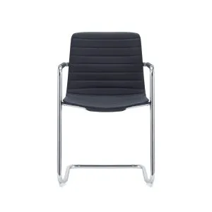 This chrome cantilever visitor chair features a sleek, modern design with a ribbed black leather finish, making it suitable for meeting rooms, reception areas, and office spaces. The ribbed detailing adds a refined look while providing supportive seating, and the cantilever frame ensures both stability and a contemporary aesthetic.