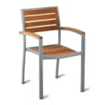 This aluminium frame chair combines durability with a natural, refined aesthetic. Featuring a slatted solid teak wood seat and back, it offers both strength and visual warmth, making it suitable for indoor and outdoor settings.