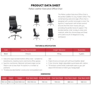 The Pallas Leather Executive Office Chair combines contemporary styling with practical comfort, making it a strong choice for boardrooms, meeting spaces, and home offices. Designed with a structured back and padded neck rest, it provides consistent support to help reduce strain during extended periods of sitting.