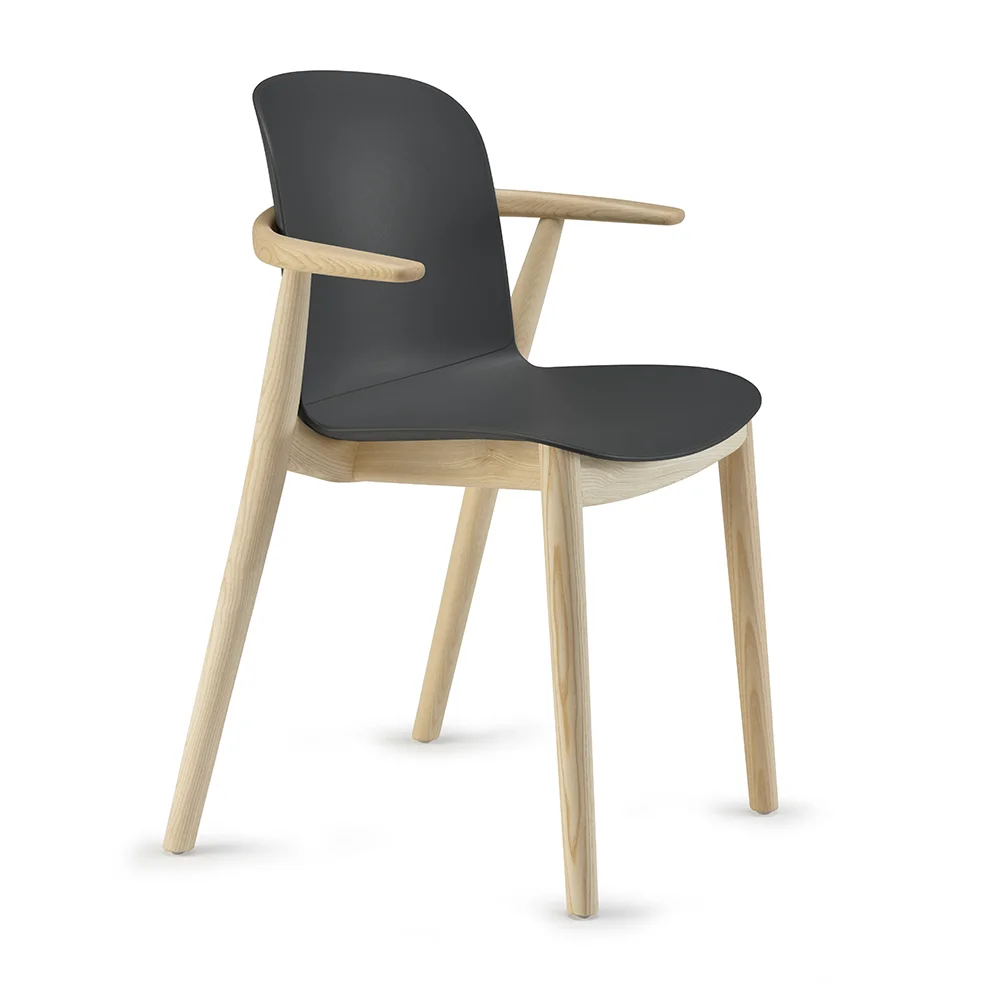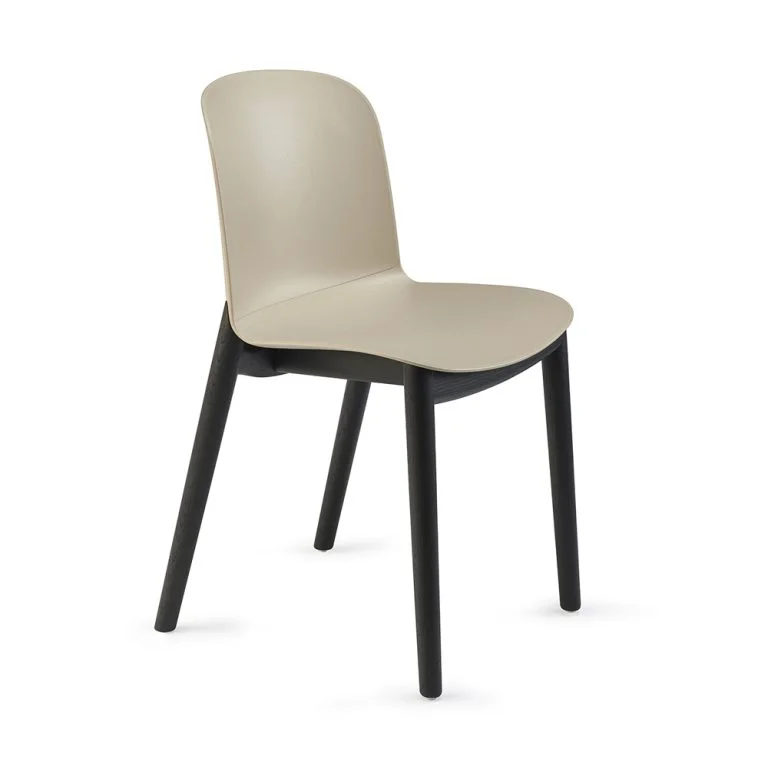 Relief does not hide its ergonomics — it wears them. Two raised reliefs on the seat and backrest mimic the look of cushions while the polypropylene shell does the structural work underneath. Soft lines, considered form, nothing wasted.
